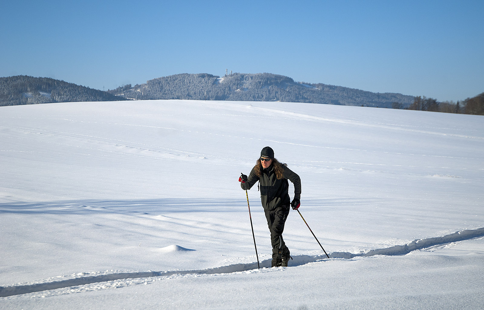 Přesně 10 km dlouhý skůtrem upravený běžkařský okruh z Boroviček až k nádraží v Bílé Třemešné!