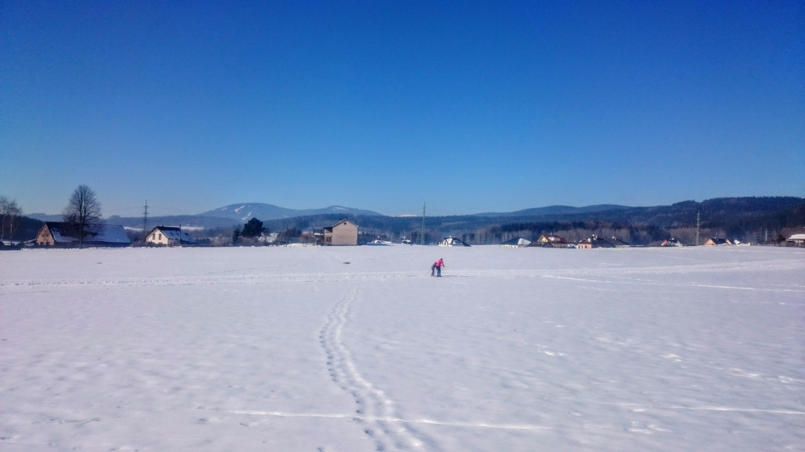 Upravené běžkařské stopy vhodné i pro bruslení mají podobu několika na sebe navazujících smyček - kroužit po polích a loukách tu tak můžete donekonečna.dvoracka Trutnov lyze0391.jpg