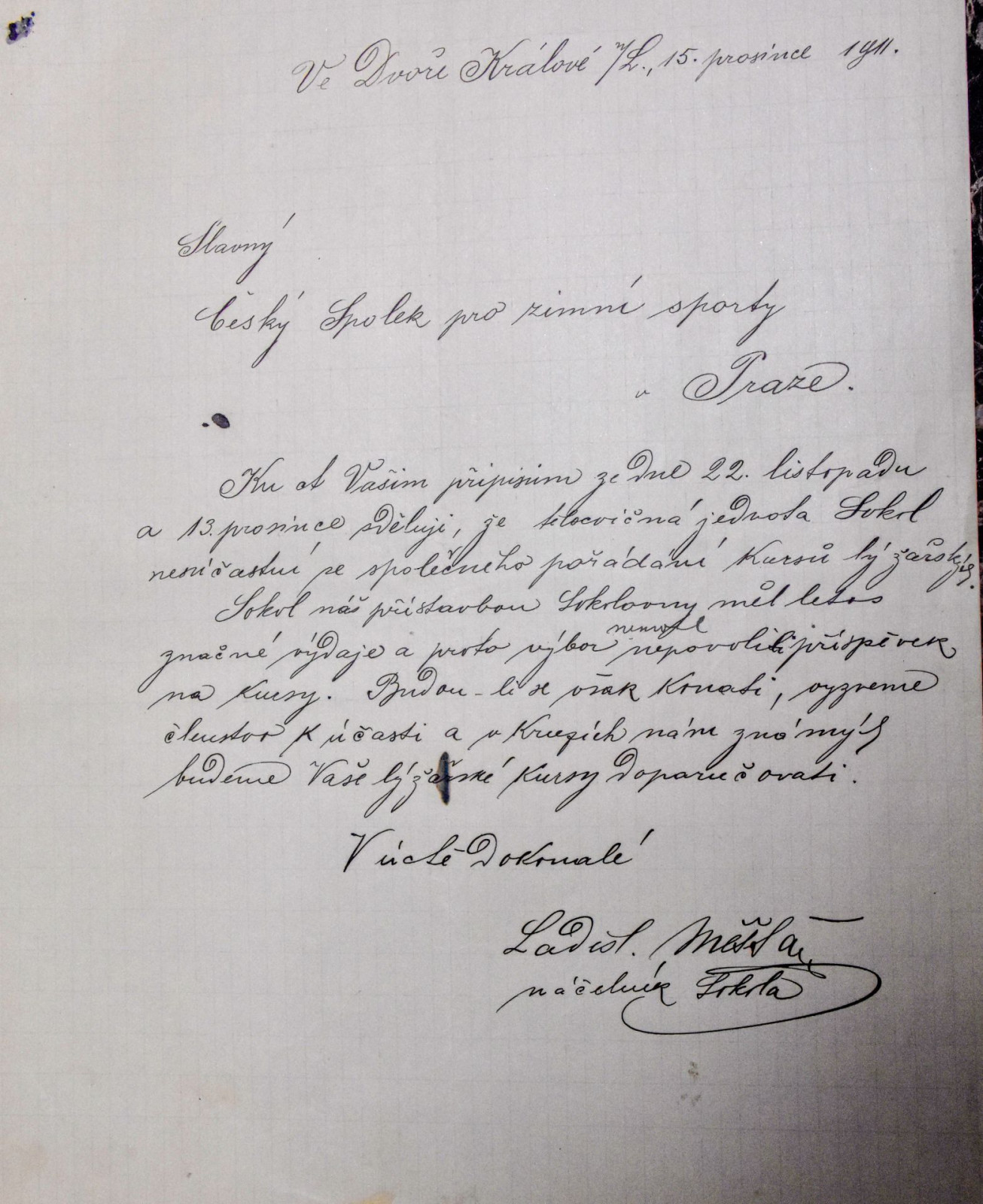 Ladislav Měšťan byl u počátků lyžování na Královédvorsku, 37 let učil v Schulzových sadech a byl náčelníkem Sokola